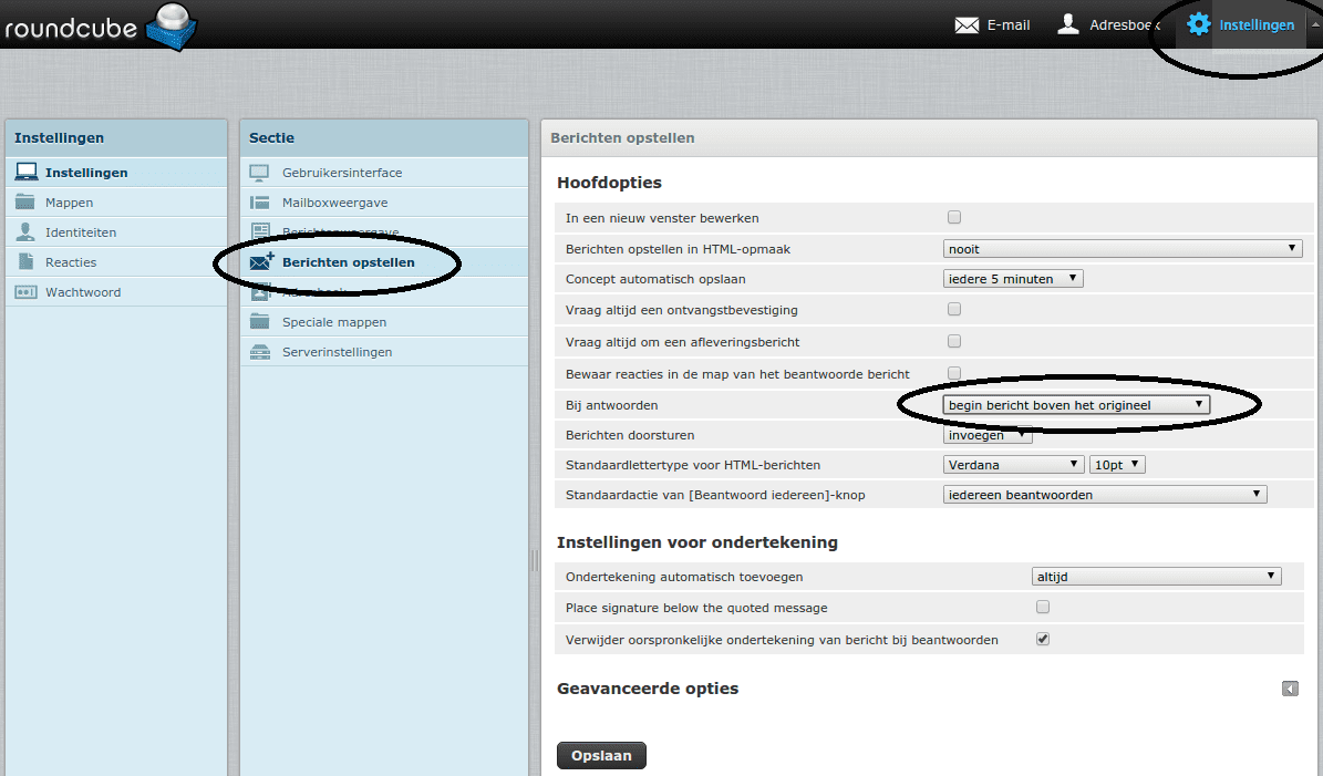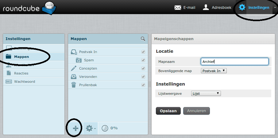 To use Roundcube's archive function, first make sure to create a folder to serve as the archive. Once you have that, click on ‘Settings’ at the top right, then on ‘Special folders’. Here, under the option ‘Archive’, select the folder you just created. Click ‘Save’ when you are done.